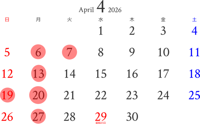 【2026年4月の営業日と定休日】広島市安佐南区上安の美容院・美容室ange(アンジュ)